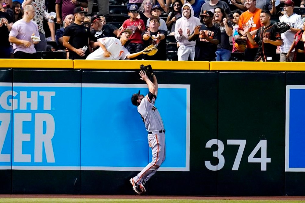 The Diamondbacks scored first when Sergio Alcantara homered with a runner on in the second. The ball barely cleared the left-field wall and the glove of Darin Ruf, hitting a fan in the front row wearing a Giants jersey in the arm. The call was reviewed by the replay crew and was upheld. It was Alcantara’s third homer of the season.