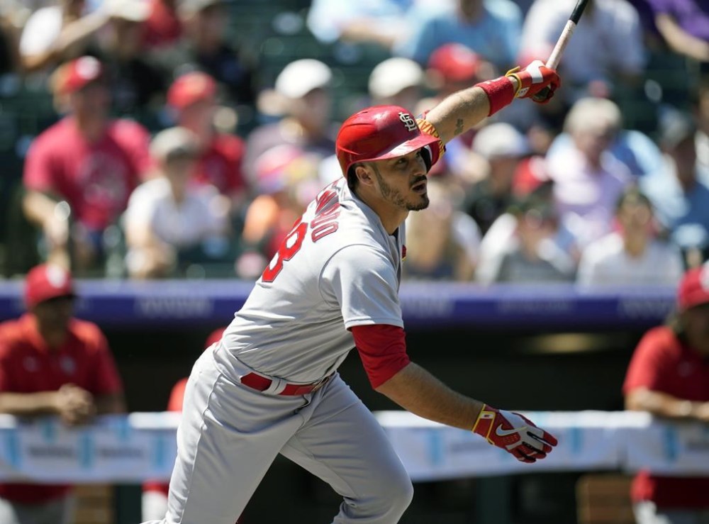 Former Rockies slugger Nolan Arenado hit his 24th home run to extend his hitting streak to nine games, but struck out looking with two on in the ninth to end it for the Cardinals. They lost for the second time in three tries since winning seven straight.