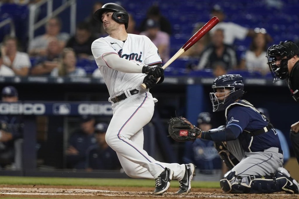 The Marlins narrowed the deficit on Jerar Encarnación’s two-run double in the seventh before Arozarena’s solo homer in the ninth.