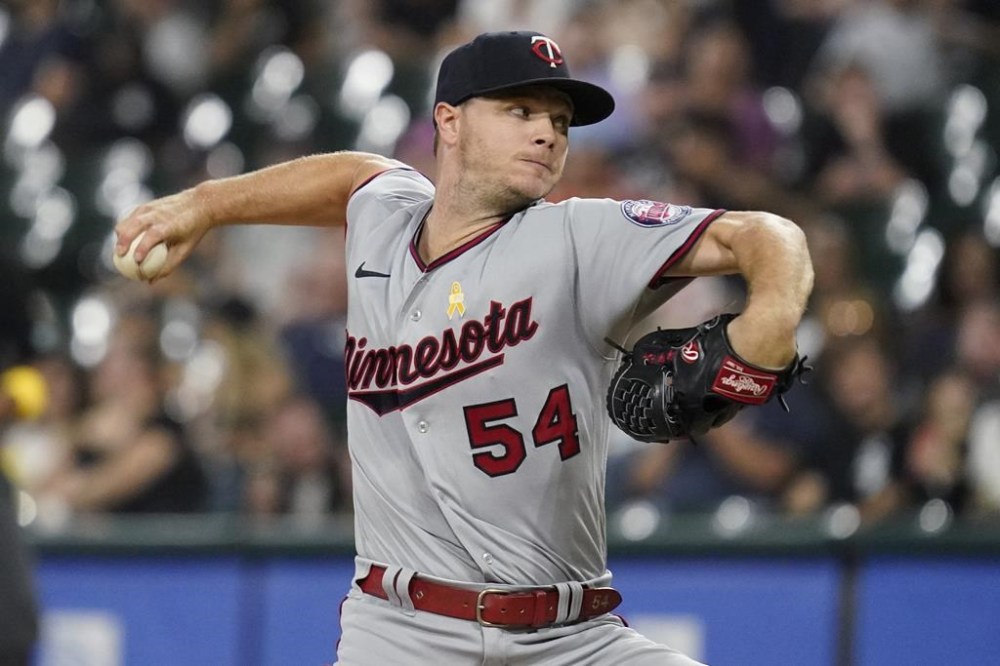 Minnesota Twins starting pitcher Sonny Gray throws to a Chicago White Sox batter during the first inning of a baseball game in Chicago, Friday, Sept. 2, 2022. (AP Photo/Nam Y. Huh)