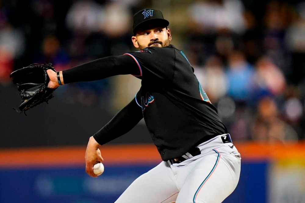 Miami Marlins' Pablo Lopez pitches during the first inning of the team's baseball game against the New York Mets on Tuesday, Sept. 27, 2022, in New York. (AP Photo/Frank Franklin II)