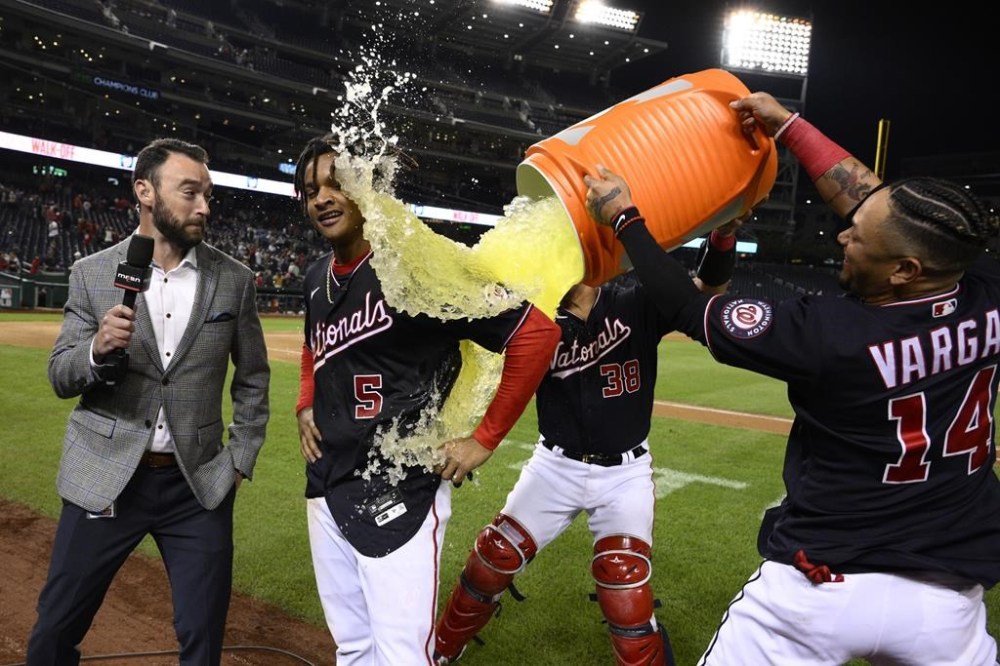 Victor Robles bunted leading off the 10th against Jackson Stephens (3-3). Robles was initially called safe, but the call was overturned, with Alex Call moving to third. With the infield in, pinch-hitter César Hernández walked. Lane Thomas grounded to third, but Abrams singled to right, scoring Call for the first walk-off hit of his young career.