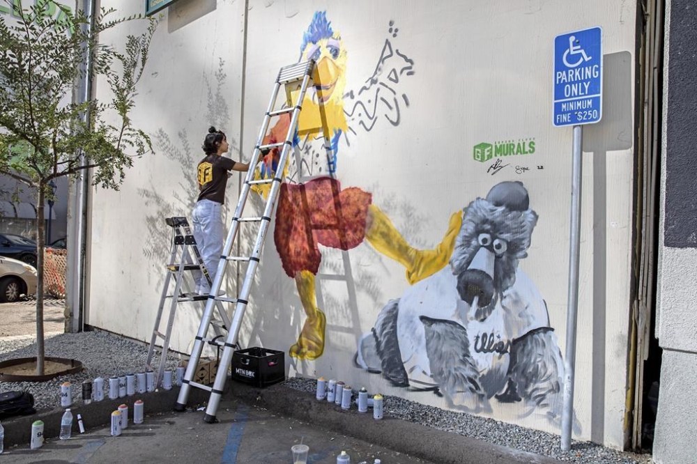 PHILADELPHIA (AP) — There was at least one fuddy-duddy in San Diego who did not see the humor in a mural painted this week of the famous San Diego Chicken using his super-sized yellow foot to stomp on the side of the head of the Phillie Phanatic.