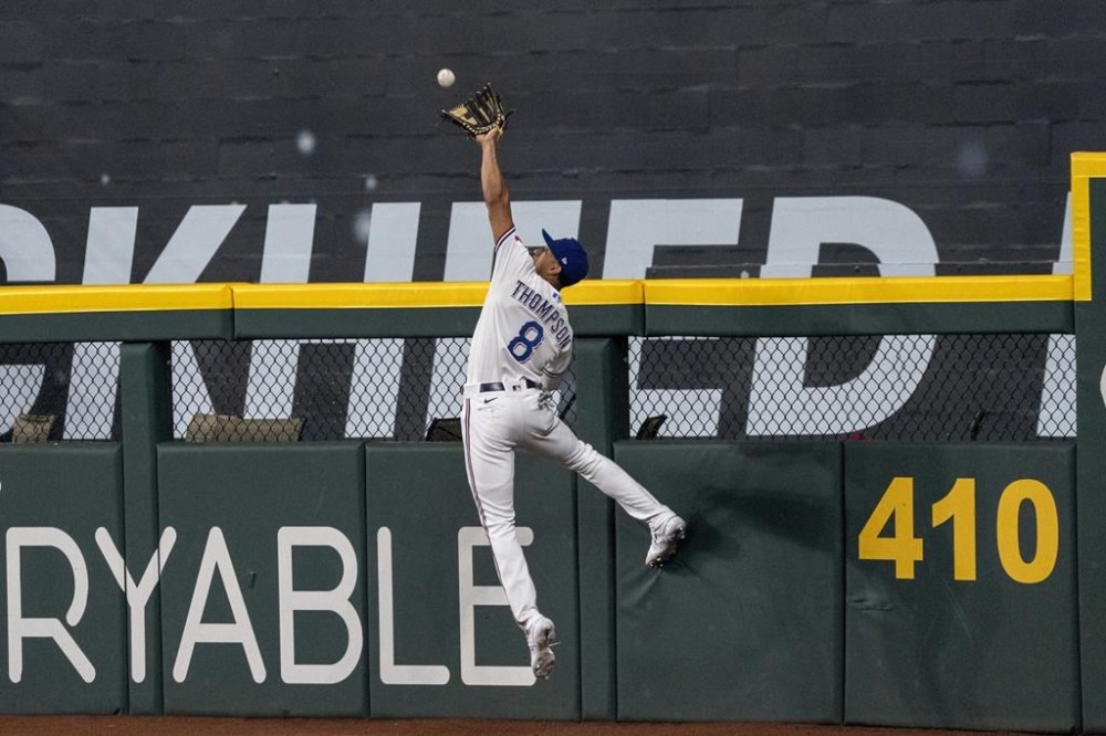 Rangers CF Bubba Thompson, who entered the game as a pitch-hitter in the fifth, took a homer away from Jake Cave with a leaping catch in the eighth.