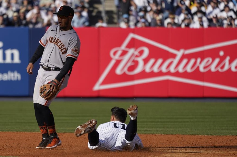 Doval gave up Aaron Judge’s RBI single in the ninth, the slugger’s third hit, but earned his first save when Stanton hit a ground ball to shortstop Brandon Crawford, who started a double play that withstood a video review. Second baseman Thairo Estrada made a low throw to first baseman LaMonte Wade Jr., who scooped the ball.
