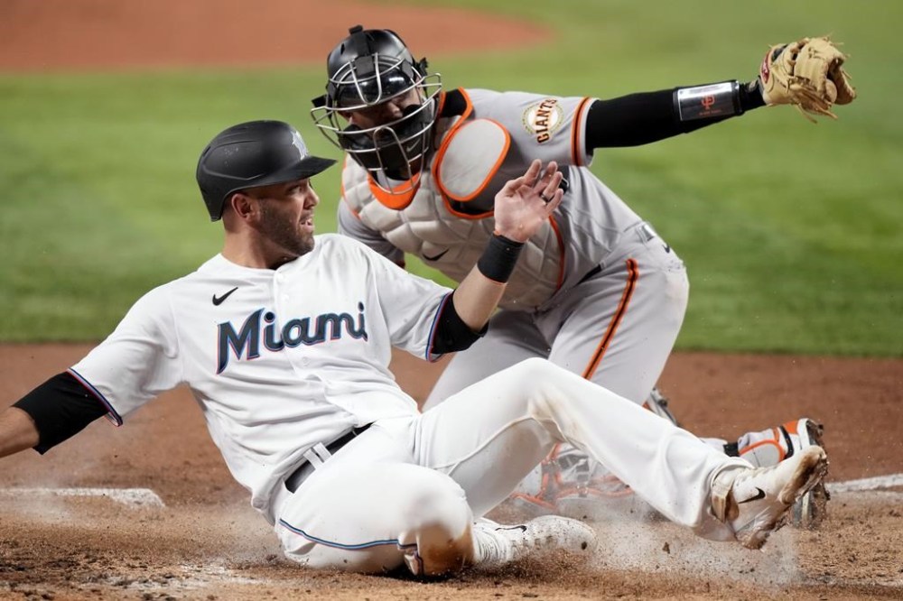 Chisholm’s shot off Giants reliever Jakob Junis (2-1) in the fourth erased a 2-1 deficit. Soler doubled and Bryan De La Cruz singled, then Chisholm connected on a drive that landed over the wall in right center field.