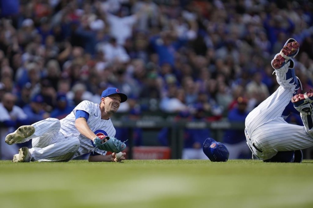CHICAGO (AP) — Drew Smyly lost his bid for a perfect game when he collided with catcher Yan Gomes while trying to field an eighth-inning David Peralta’s dribbler that went for an infield single in the Chicago Cubs’ 13-0 victory over the Los Angeles Dodgers on Friday.