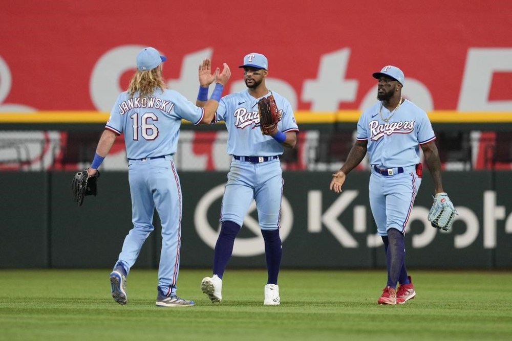 Grossman’s homer in the second inning, his second this year, gave Texas a 3-0 lead. He had a sacrifice fly in the fourth after Marcus Semien had an infield hit to second that was called a groundout on the field. Texas successfully challenged the call.