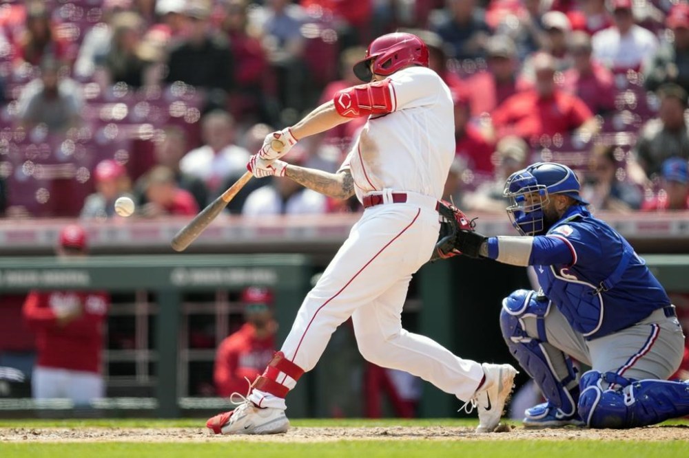 Cincinnati (10-15) completed a three-game sweep of AL West-leading Texas (14-10), the first series sweep for the Reds since last July 8-10 over Tampa Bay. The Reds never trailed in the series finale after overcoming a four-run deficit in the opener and a six-run margin on Tuesday.