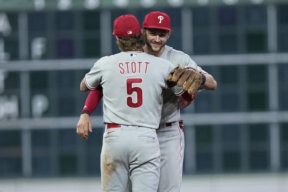 The Astros had a chance to tie it in the fifth with runners on the corners and nobody out, but Jake Meyers hit a slow dribbler to first and Alec Bohm threw out José Abreu at the plate. Nola retired Rylan Bannon and Martín Maldonado to end the threat.