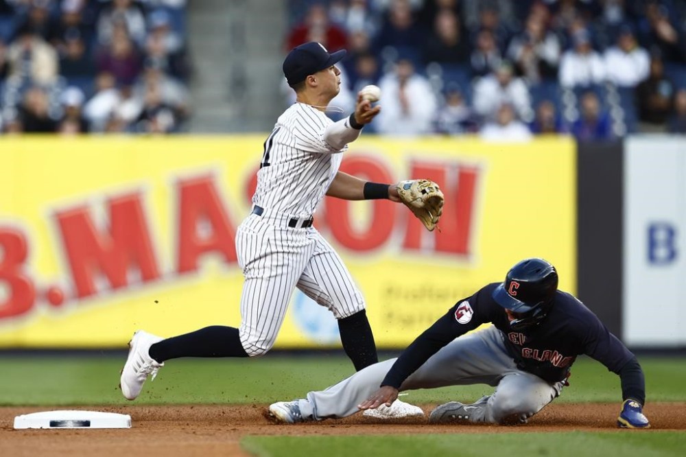 Enyel De Los Santos (2-0) got the final two outs of the eighth, throwing one pitch and picking off Anthony Volpe. Emmanuel Clase got three straight outs for his 10th save in 12 chances, ending a game that took just 2:06.