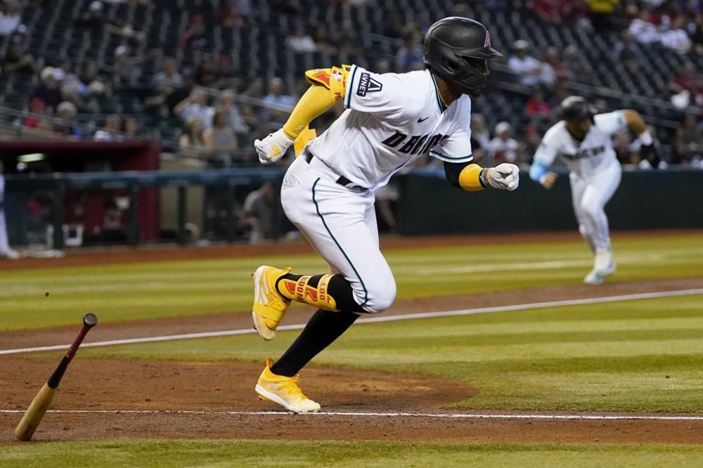 Arizona’s Corbin Carroll appeared to beat out a bunt for a hit in the fifth, but was ruled out by plate umpire Dan Bellino for going out of the baseline while attempting to elude the tag attempt by first baseman Arraez.