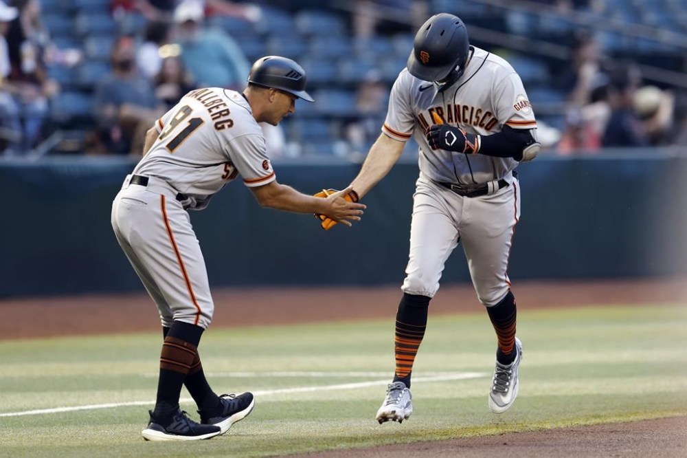 Schmitt connected for a 443-foot home run into the second deck above the Diamondbacks’ bullpen in the second inning off Tommy Henry (1-1). Schmitt, recalled Tuesday from Triple-A Sacramento, finished 4 for 4 with a run-scoring double and is 8 for 12 with two homers and four RBIs through three games.