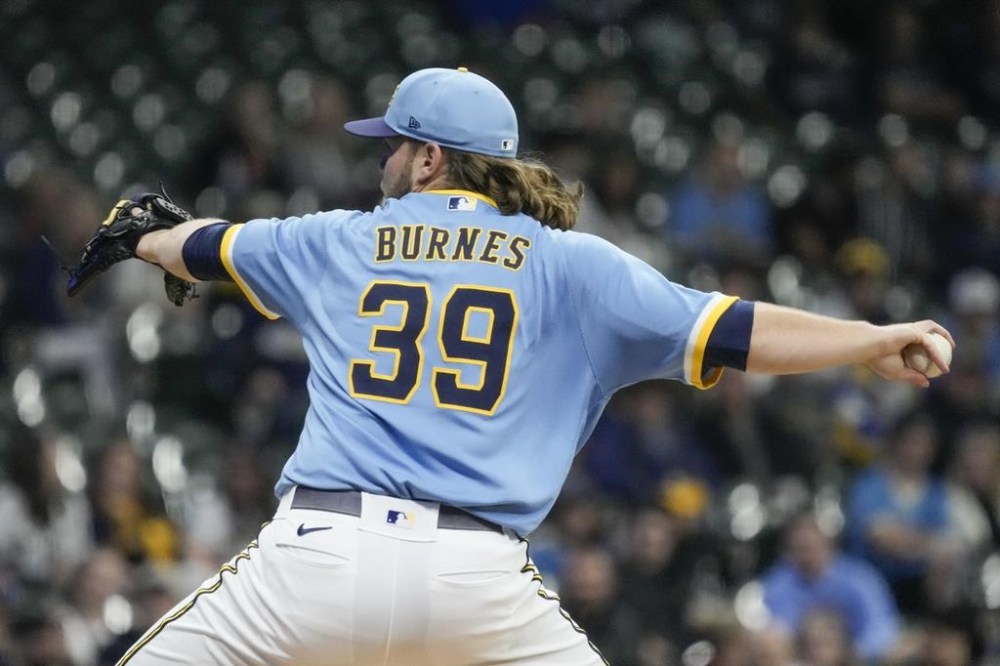 Burnes (4-2) settled down after some early control issues. He struck out seven and allowed only two hits while throwing a season-high 104 pitches.