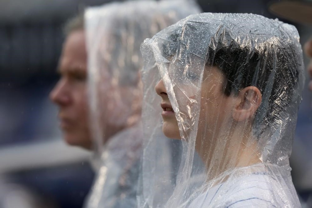 A light rain was falling when the game began at 4:05 p.m. EDT and soon intensified, but play continued.