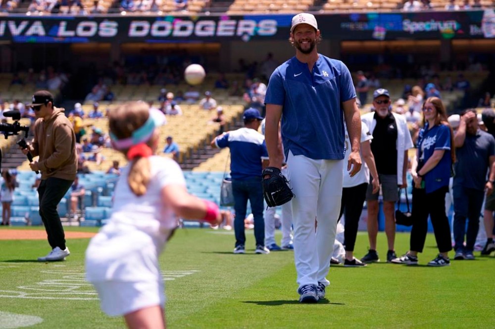Kershaw and his wife have four children. He played catch with two of them on the field Sunday before the game.