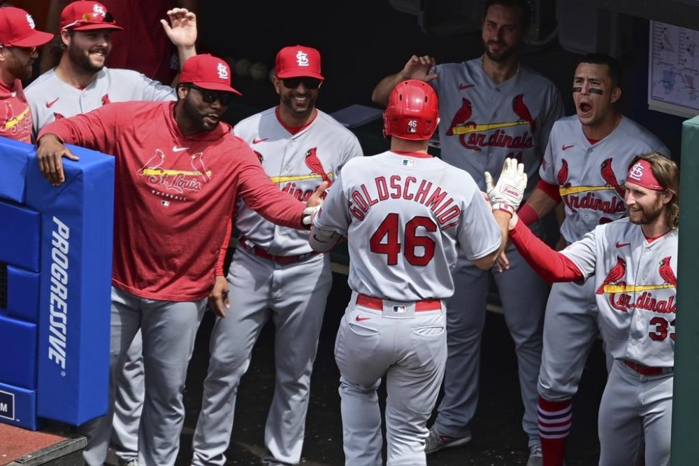 Paul Goldschmidt hit one of three solo homers for St. Louis in the fifth inning. Goldschmidt, Arenado and Alec Burleson each had two hits.
