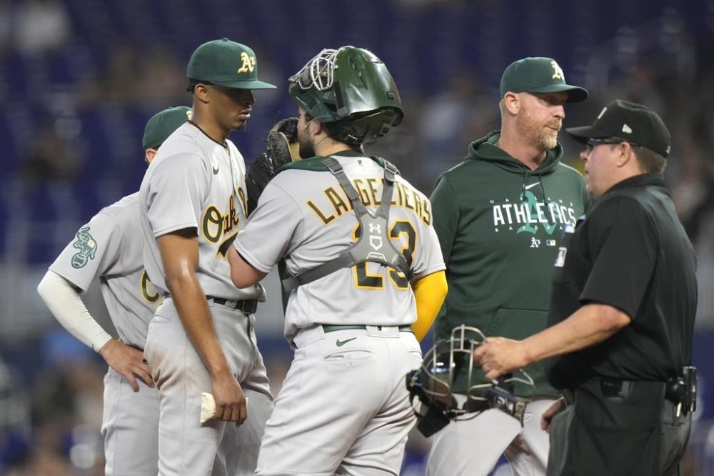 The Marlins struck early against Oakland starter Luis Medina with a four-run second. Jonathan Davis hit a two-run double and scored on Arraez’s single. Jorge Soler’s single advanced Arraez to third before Bryan De La Cruz had a sacrifice fly to right.