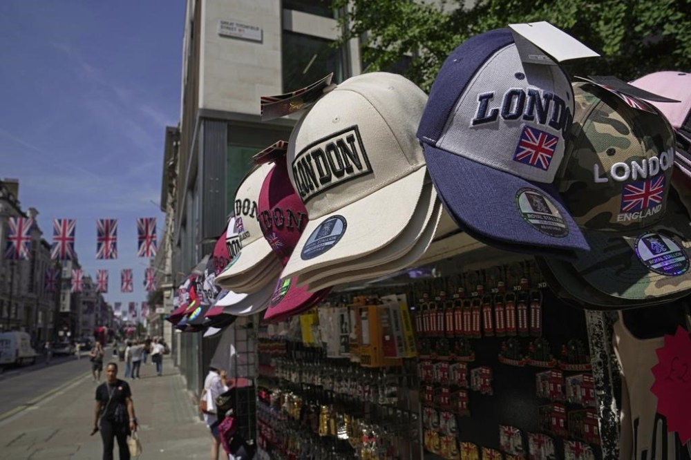 Caps are displayed for sale at a store in London, Thursday, June 15, 2023. Major League Baseball wants to grow in Europe and is looking for ways to connect with the local fans. The league hopes to stage games in Paris in 2025 and sees fashion as a way to create more interest with French fans. Caps and jerseys with city and team names are proving fashionable. MLB says e-commerce sales are up 25 percent this year in France, with headwear sales up 152 percent. The New York Yankees are the top sellers. (AP Photo/Kin Cheung)