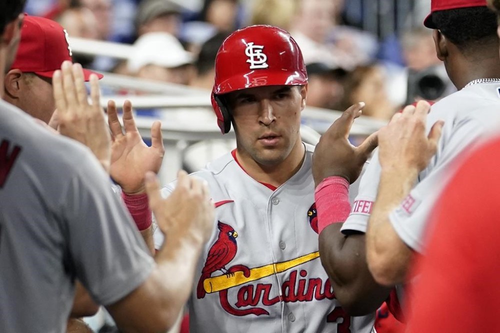 St. Louis came from behind to tie the game twice — once in the third and again in the fourth — before Bryan De La Cruz put Miami ahead 7-6 in the sixth with an RBI double.