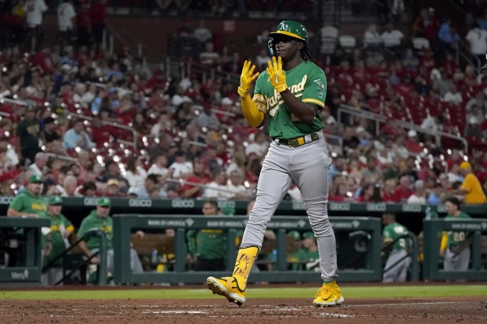 Oakland outfielder Esteury Ruiz stole his 47th base of the season in the third inning to extend the franchise rookie record.