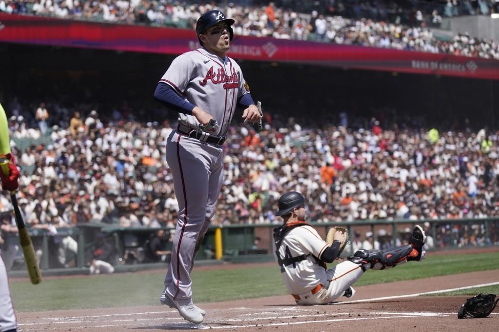 Giants opener Ryan Walker got into trouble early after opening the game with back-to-back swinging strikeouts of Ronald Acuña Jr. and Michael Harris II. Riley walked before Olson doubled off the brick wall in right field. The ball bounced back onto the field as Riley raced around the bases and slid safely into home, beating the throw from Austin Slater.