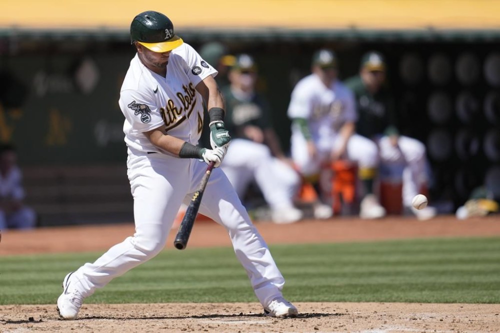 A’s starter JP Sears (4-11) pitched five uneven innings and earned his first win since July 28. Sears, who leads the majors in hit batters, worked around four walks and allowed four hits and one run.