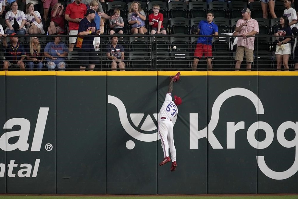 García got hurt after his unsuccessful leaping attempt to prevent a home run while playing right field Wednesday night, when Houston hit five homers and beat the Rangers 12-3 to complete a three-game sweep.