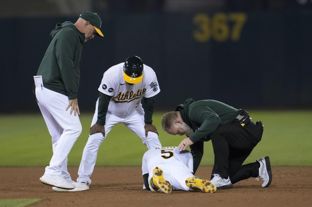 Athletics: Kemp was removed from the game and diagnosed with a right ankle sprain. … OF J.J. Bleday (knee) began a rehab assignment with Triple-A Las Vegas.