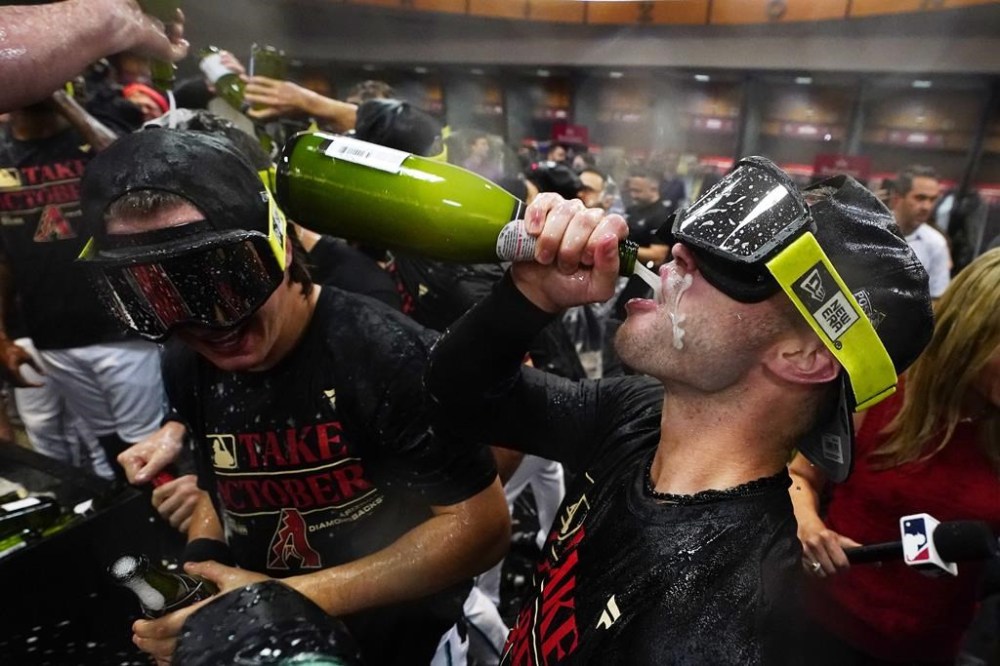 PHOENIX (AP) — The Arizona Diamondbacks celebrated their return to the postseason with the typical party, a champagne-soaked fun fest in the clubhouse that eventually included a dip in the Chase Field swimming pool behind the right-center field wall.