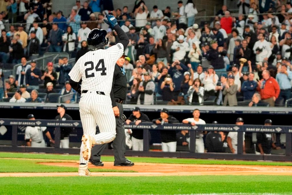 Verdugo hit a go-ahead home run in the second inning. After clearing the short porch in right field at Yankee Stadium, Verdugo was met with a barking mob in the dugout, featuring pet sounds from Giancarlo Stanton and Rizzo.