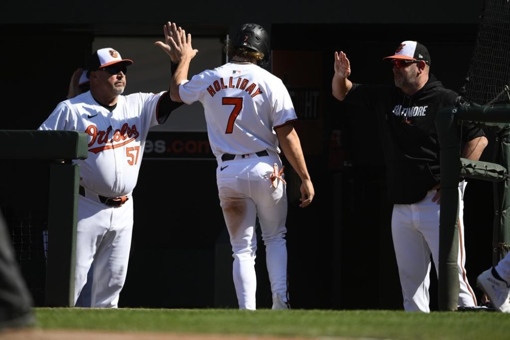 Holliday struck out in his first two at-bats before he came up with the Orioles down 4-3 in the seventh. His single put men on first and third with nobody out. Then Gunnar Henderson singled to tie it, and Holliday sped around to third, barely beating the throw.