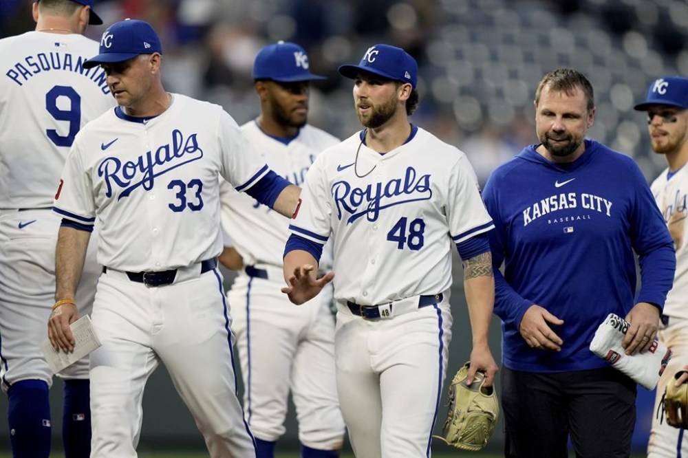 KANSAS CITY, Mo. (AP) — Kansas City Royals right-hander Alec Marsh was hit on his throwing arm by a line drive, forcing him to leave in the fifth inning against Toronto on Wednesday night.