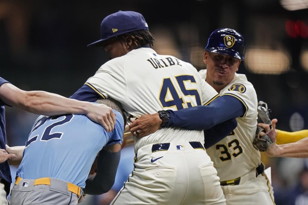Rays and Brewers get into wild brawl, with Uribe and Siri in the middle of it