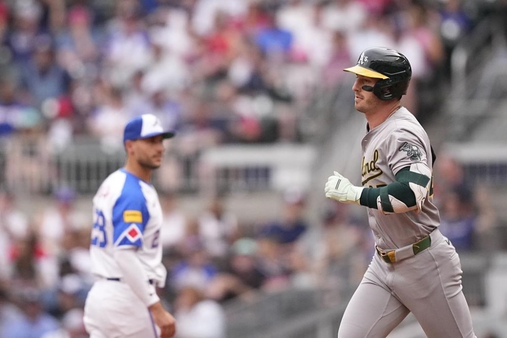 Brent Rooker also homered and drove in four runs for Oakland. His two-run double in the sixth gave the A’s a 10-9 lead. No. 9 hitter Max Schuemann was 4 for 4 with three runs scored.