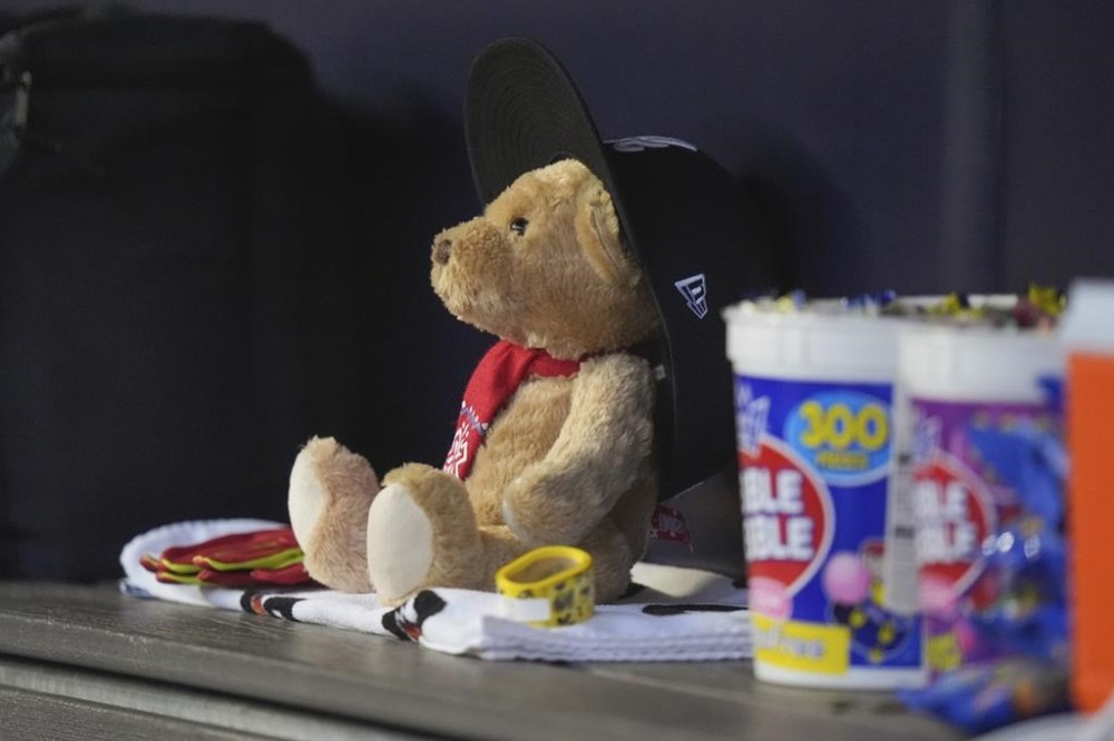 Snitker wasn’t sure how the bear first arrived in the clubhouse. He said he initially asked a clubhouse attendant to open the package and then followed a suggestion to place the bear in the dugout as a spectator.