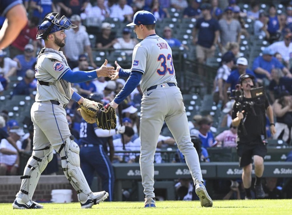 Smith was summoned without notice to replace Díaz and warmed up entirely on the mound at Wrigley Field. He got two outs without giving up a run but was visited by an athletic trainer during the outing because he was having trouble getting loose.