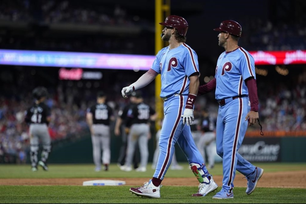 Phillies stars Bryce Harper and Kyle Schwarber both injured late in loss to Marlins