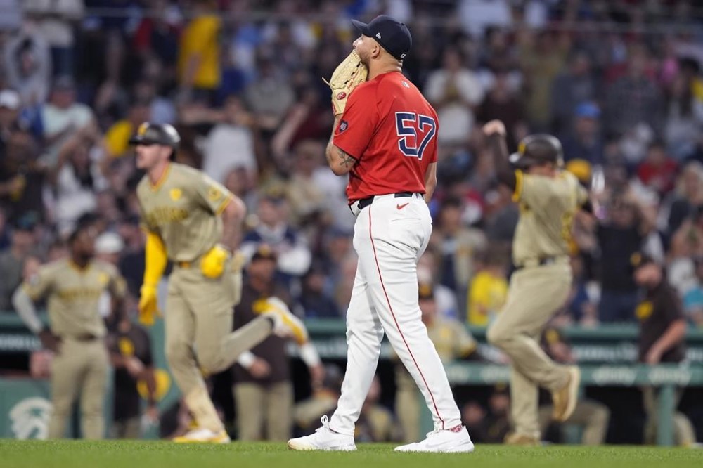Right-hander Randy Vásquez started for the Padres and went four-plus innings, giving up one run on five hits and a walk with one strikeout. He was replaced by Wandy Peralta after Ceddanne Rafaela’s comebacker hit him on his pitching arm and he suffered a forearm contusion.