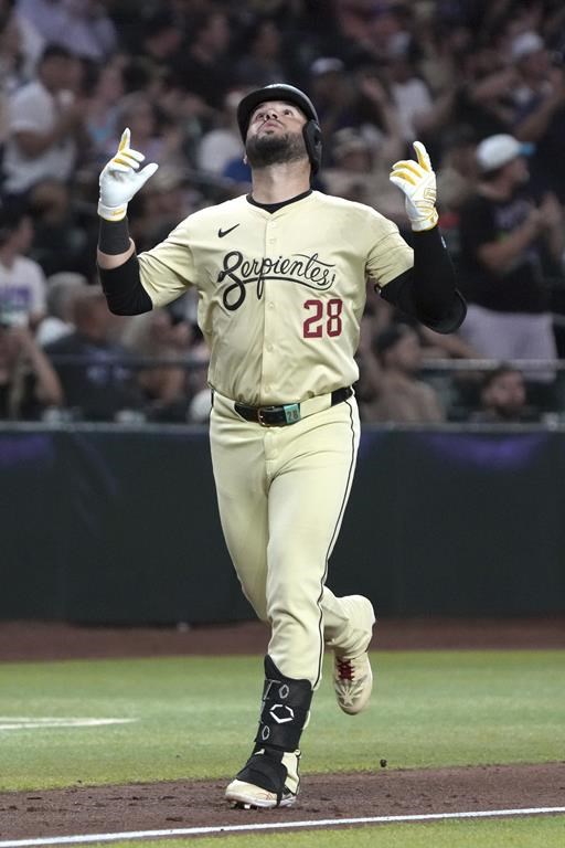 PHOENIX (AP) — Arizona Diamondbacks third baseman Eugenio Suárez hit three home runs against the Washington Nationals on Tuesday night.