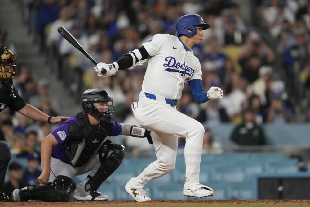 Ohtani’s 52nd homer off a 3-2 pitch from Kyle Freeland traveled 423 feet to center field, scoring Max Muncy and put the Dodgers ahead 3-2 with two outs in the fifth inning.