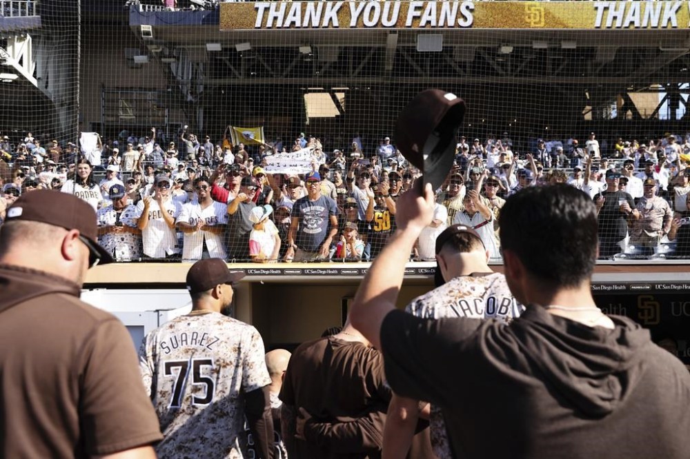 The Padres, who are closing in on a postseason berth, gathered in front of their dugout to applaud the sellout crowd of 45,197 that roared through the bottom of the eighth and then the top of the ninth of the 4-2 win in the regular-season home finale on the brilliant first day of autumn. Some fans even chanted “Beat L.A.!” in anticipation of a huge series starting Tuesday night at the Los Angeles Dodgers.