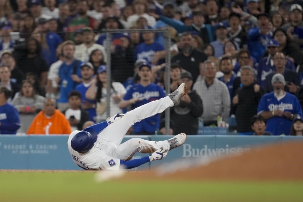 The All-Star slugger left Thursday’s NL West-clinching game in the seventh inning after rolling his right foot trying to avoid a tag at first base by San Diego’s Luis Arráez. Freeman was on crutches and in a walking boot following the game. In addition, the Dodgers left shortstop Miguel Rojas at home due to a torn adductor.
