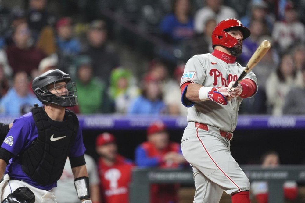 DENVER (AP) — Kyle Schwarber hit his 300th career home run, a 466-foot shot off the facing of the third deck in right field, and the Philadelphia Phillies rallied past the struggling Colorado Rockies 9-3 on Monday night.