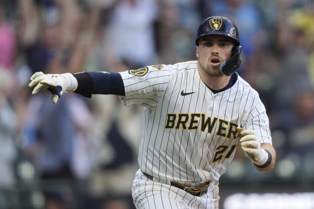 Sal Frelick was hit by a pitch to open and William Contreras singled. Jackson Chourio followed with an RBI double to left then after an out, Vaughn lined a two-run double.