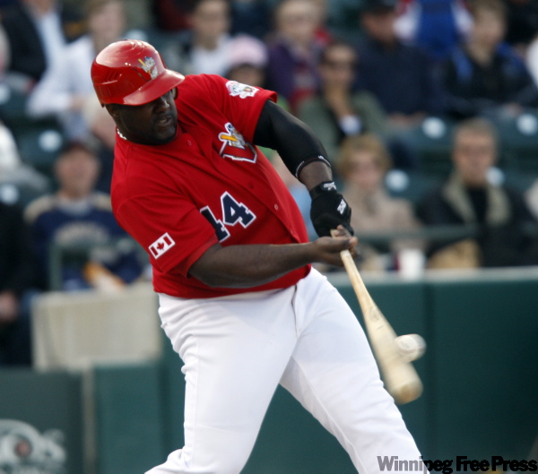 The Goldeyes’ designated hitter, assisted by a strong wind blowing out to left field, rained more than a dozen balls out onto Waterfront Drive during the team’s batting practice late Wednesday afternoon.