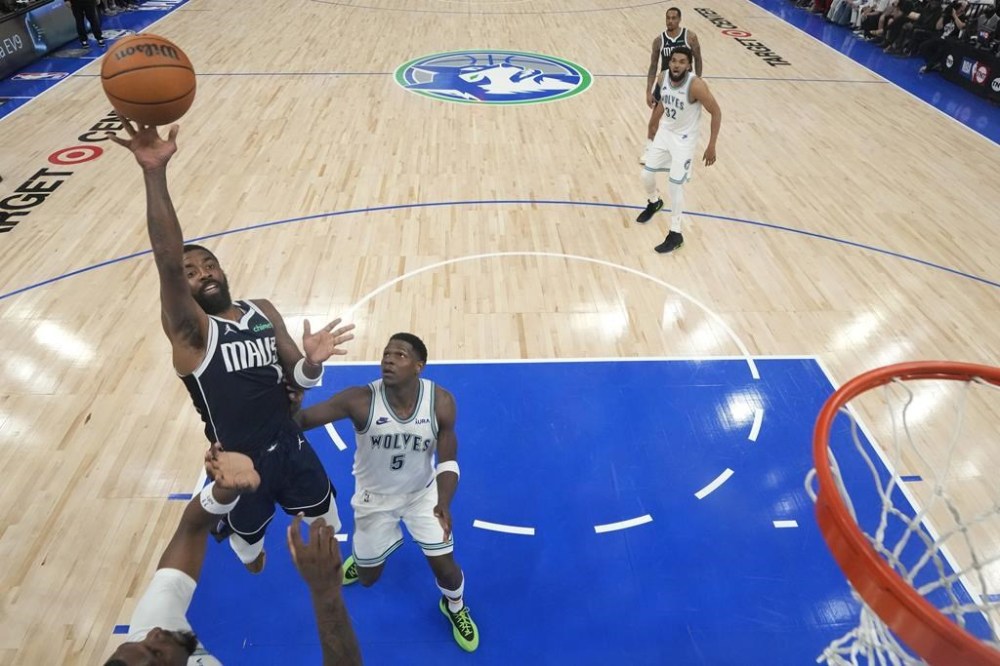 MINNEAPOLIS (AP) — Kyrie Irving injected a burst of energy into the Dallas Mavericks to begin the Western Conference finals with a furious flurry of drives to the basket against the Minnesota Timberwolves.