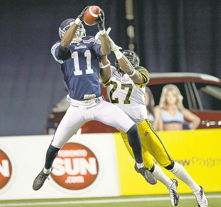Hamilton (6-12) continually shot itself in the foot against the Argos’ B-team — which played veteran Jarious Jackson and rookies Trevor Harris and Zach Collaros at quarterback in the contest, with Collaros’s 13-yard TD pass to Sammy Tranks putting the home team ahead 37-26 at 3:38 of the fourth.
