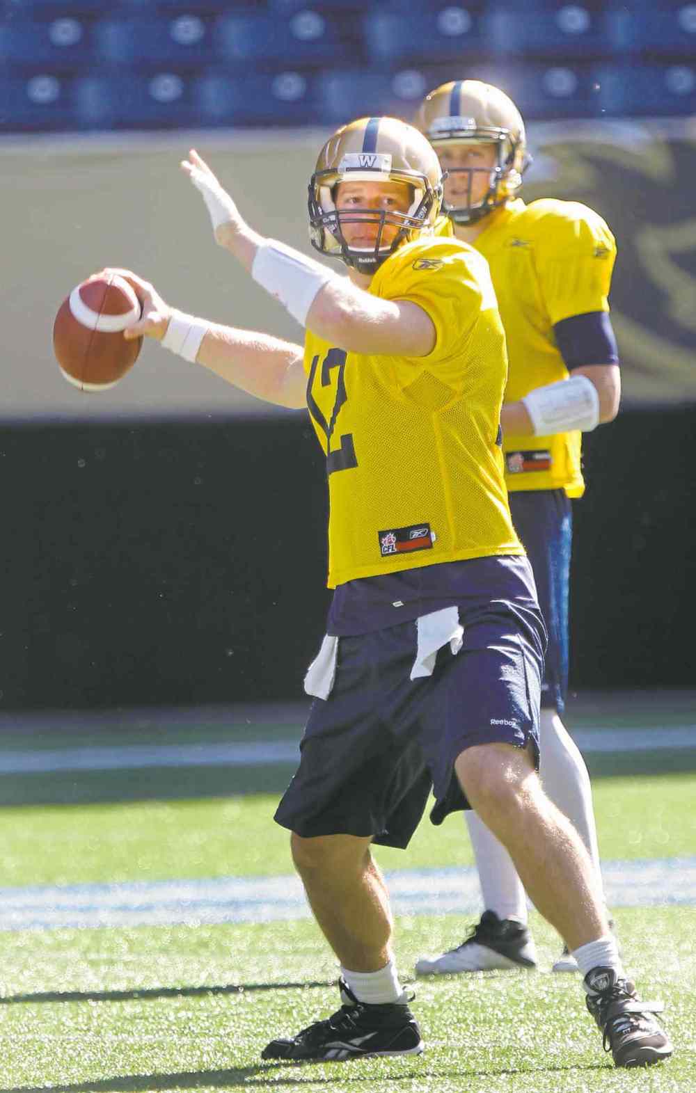 He started gently at first in Tuesday’s practice. Quick, low darts gave way to longer throws, one of them an interception, but what really stood out is he was taking first-team reps. That doesn’t mean his sprained right shoulder will be ready to face the Hamilton Tiger-Cats at Investors Group Field Saturday. It does mean there’s a greater chance.
