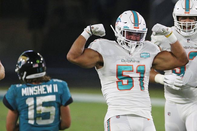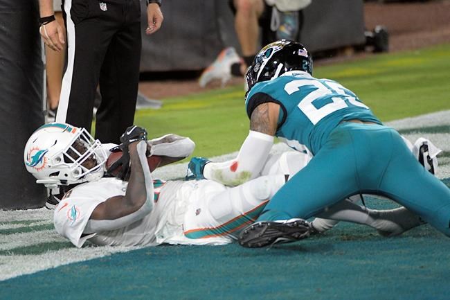 Jaguars safety Andrew Wingard was ruled out at halftime with a core muscle injury. He was filling in for starter Jarrod Wilson, who is on injured reserve. … Jaguars receiver DJ Chark (chest/back) was ruled out about six hours before kickoff. He’s expected back at practice next week. … The Dolphins were without No. 1 cornerback Byron Jones (groin/Achilles tendon).